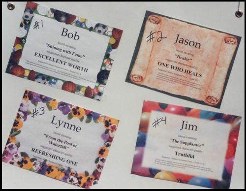 San Diego, CA. A good place to get more names would be from a names book found at your local Christian book store or LifeWay at, 800-677-7797. |