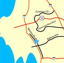Dove Framing&Art To visit our gallery simply take Interstate 5 North or South. Exit at Balboa Ave and go east to Morena Boulevard. Take Morena Blvd. North and the gallery will be on your left-hand side, approximately 1/2 mile. For precise driving directions form your departure point just click on the link below. |